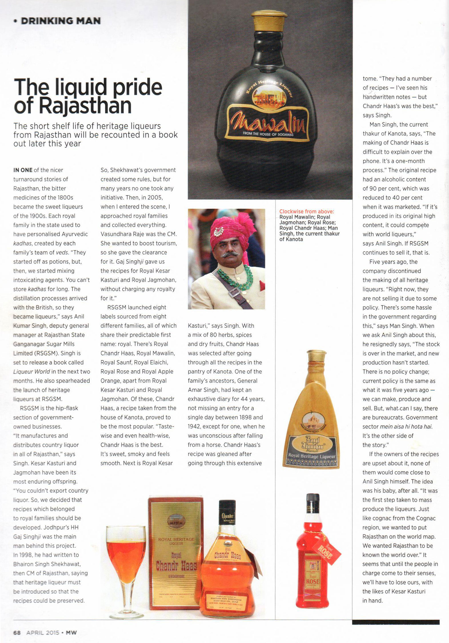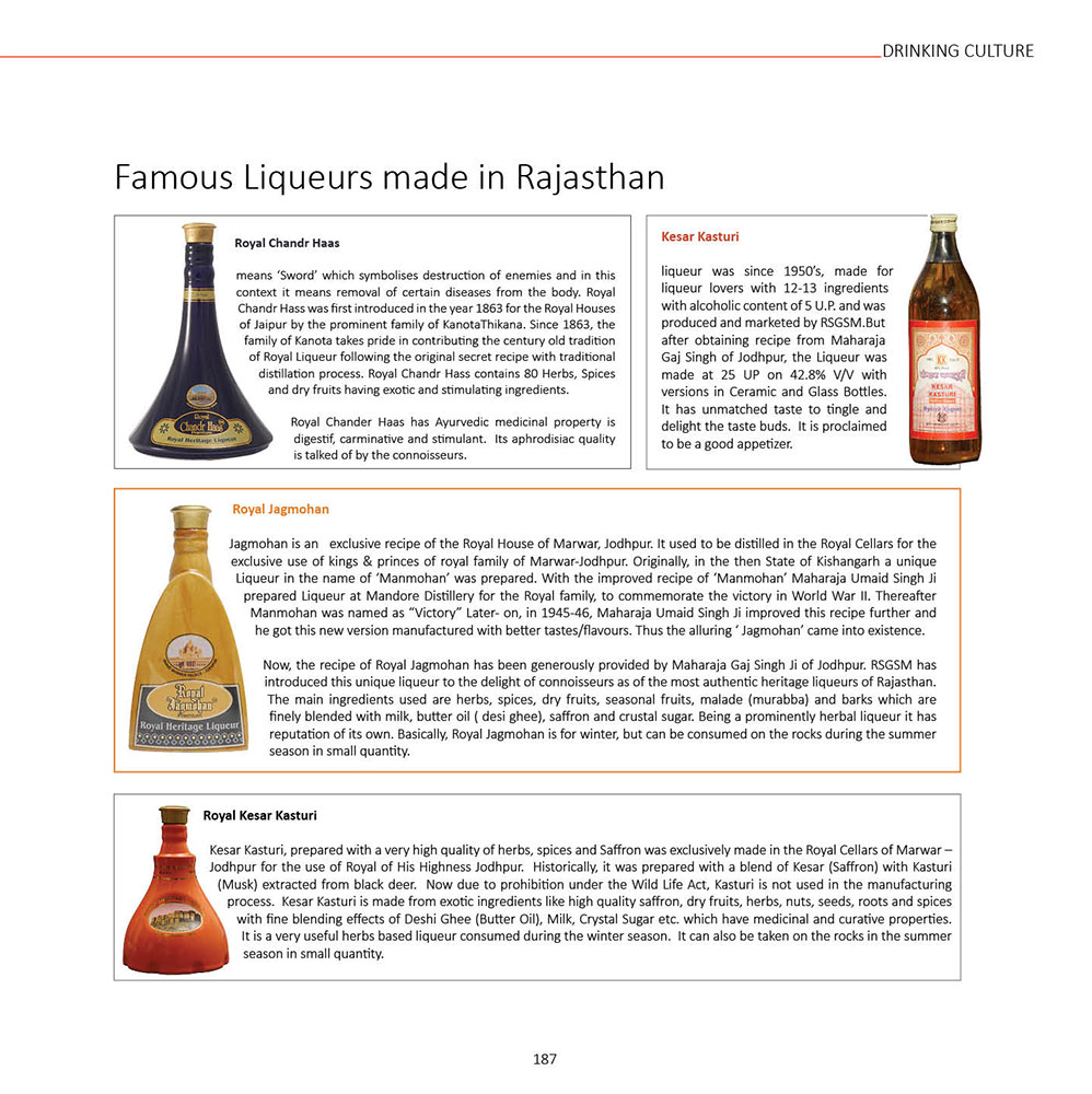 The book has been mentioned in Ambrosia- an alcoholic beverages magazine. Its editor Toprit Saifi interviewed His Highness Maharaja Gaj Singh who provided an insight about the prized possession of Heritage Liqueurs (Liquor) of Rajasthan.