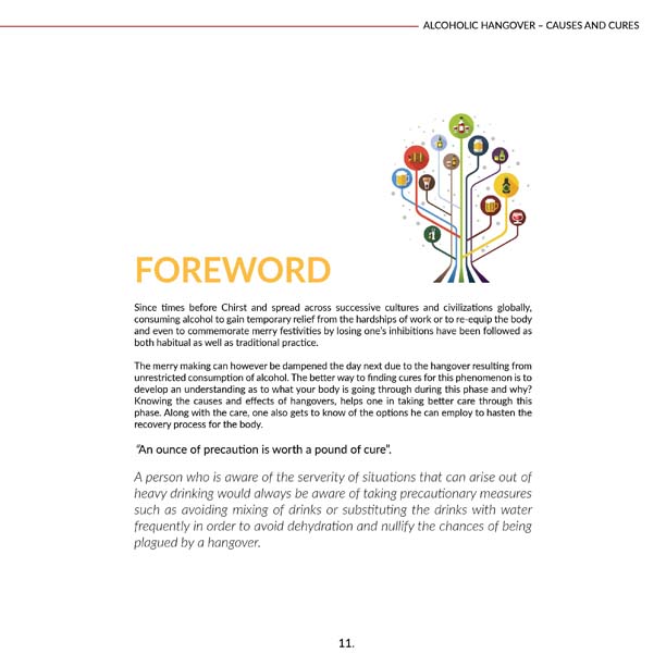 In this new book, "HANGOVER CAUSES AND CURE" , author gives a detailed description on Sensible Drinking of Alcohol, its effect on body, how to overcome its aftermath, different method to cure Hangover and Drinking Etiquettes.